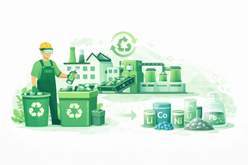 Under this framework, producers are responsible for ensuring that batteries introduced into the market are collected and recycled at the end of their life through authorised recyclers.